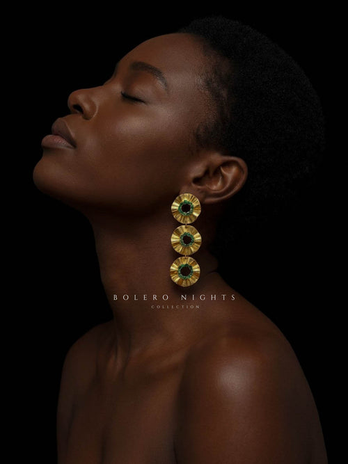 Joya exclusiva de Ríos Collection. Pieza en bronce con enchapado en oro de 24K y esmeraldas naturales.