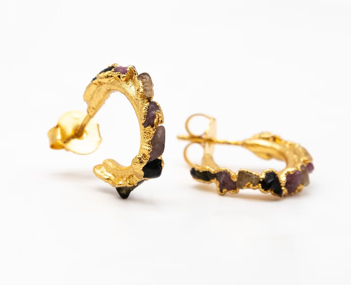 Joya exclusiva de FUSIÓN Collection, maxi topo con esmeraldas naturales en bruto incrustadas y fabricada en Bronce con enchapado en Oro de 24 k. Todas nuestras piezas son libres de níquel.