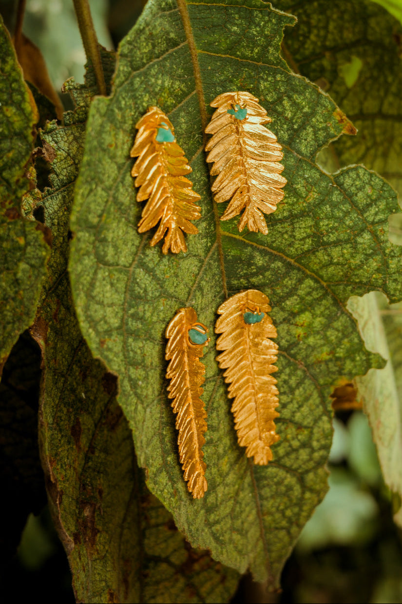 PIEZAS DE JOYERÍA HECHAS A PARTIR DE HOJAS NATURALES CON ESMERALDAS NATURALES EN BRUTO
