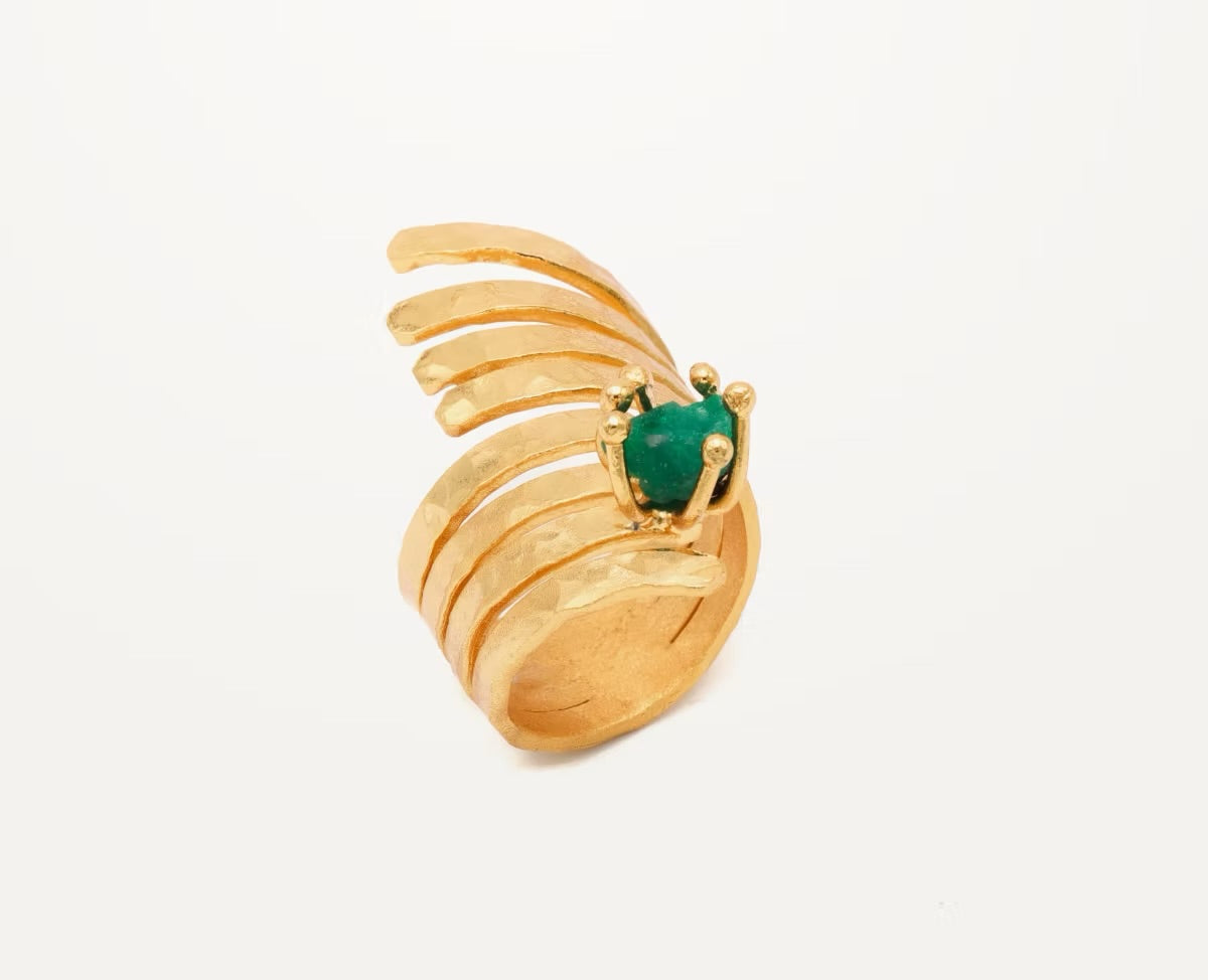 $150.000,00$150.000,00/Joya exclusiva de FUSIÓN Collection, anillo con Esmeraldas naturales en bruto incrustadas y fabricada en Bronce con enchapado en Oro de 24 k. Todas nuestras piezas son libres de níquel. PESO:...