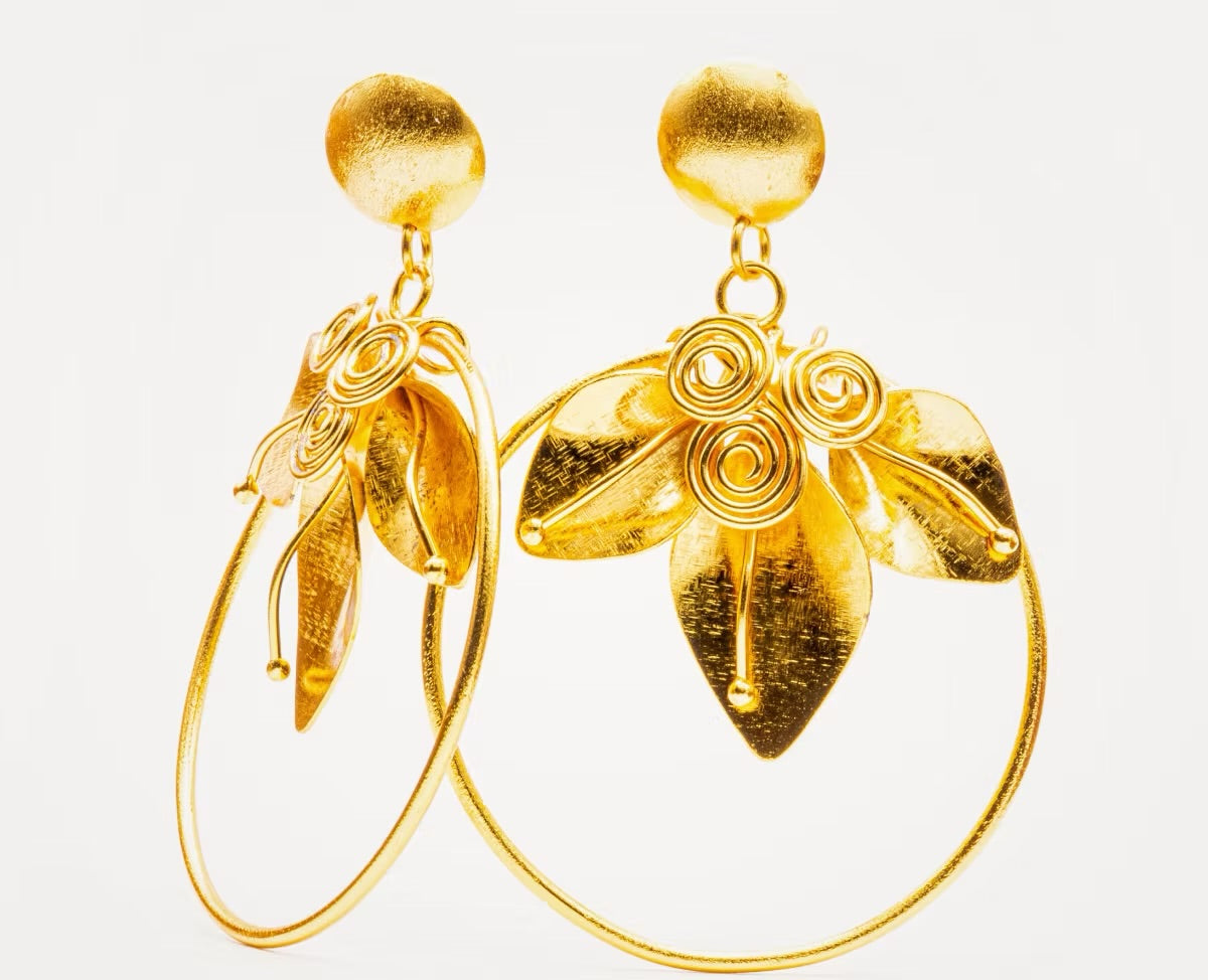 $180.000,00$180.000,00/Joya hecha en Bronce enchapado en Oro de 24 k. PESO: 6.7 gr C/U.MEDIDAS: 7,7 cm alto x 3,5 cm ancho. Joyería Contemporánea hecha a mano en Bogotá, Colombia.