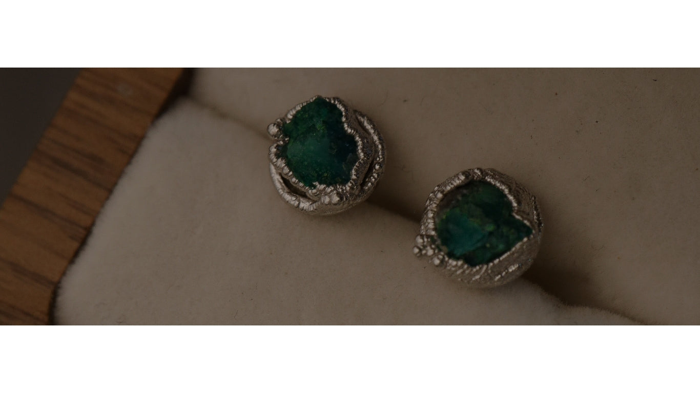 $250.000,00$250.000,00/Joyería elaborada en plata con esmeraldas naturales en bruto.MEDIDAS: 2.1 cm ancho x 2.3 cm altoPESO: 1.7 gr C/U Joyería elaborada a mano en Bogotá, Colombia.
