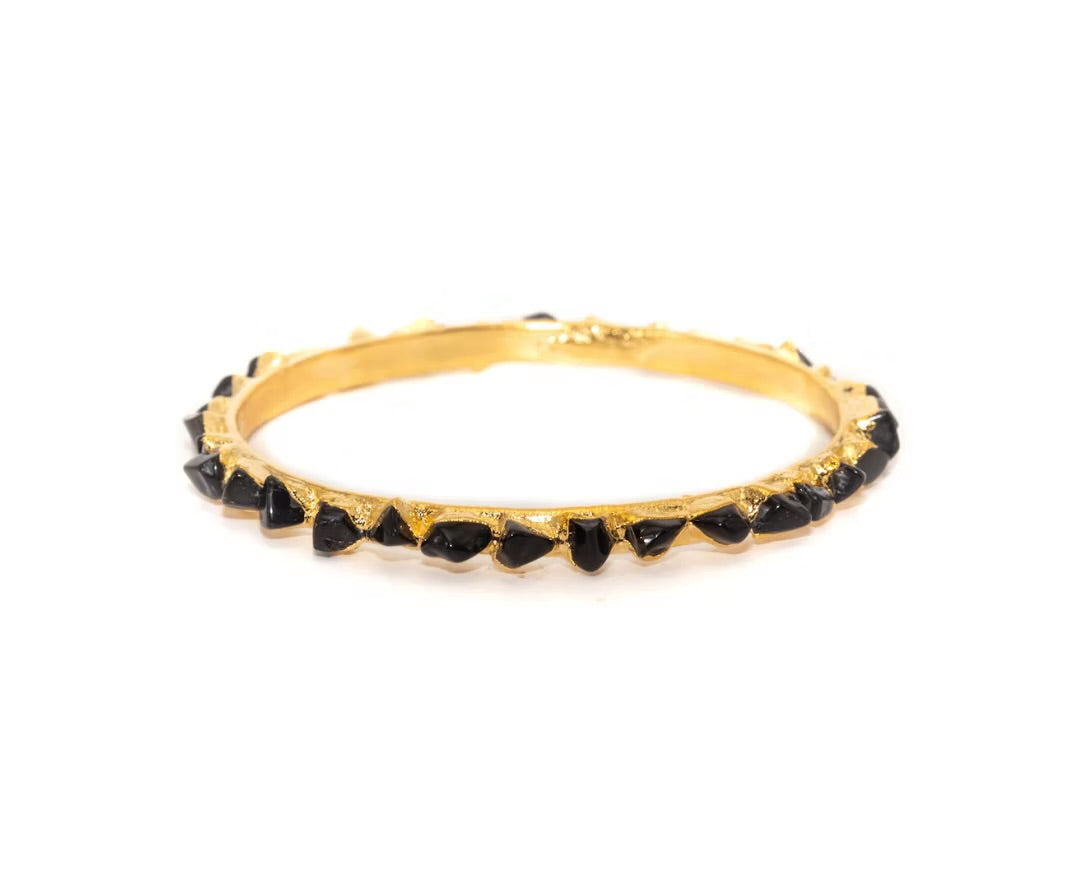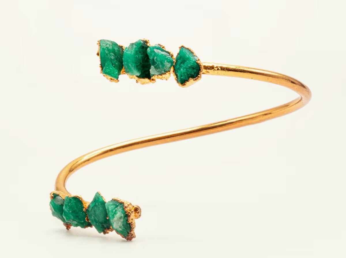 Joyas de brazaletes en bronce con enchape en oro, esmeraldas naturales en bruto y piedras preciosas: Elegancia y Distinción.