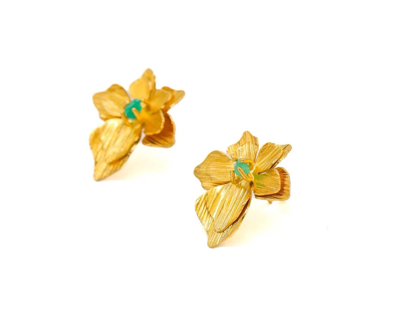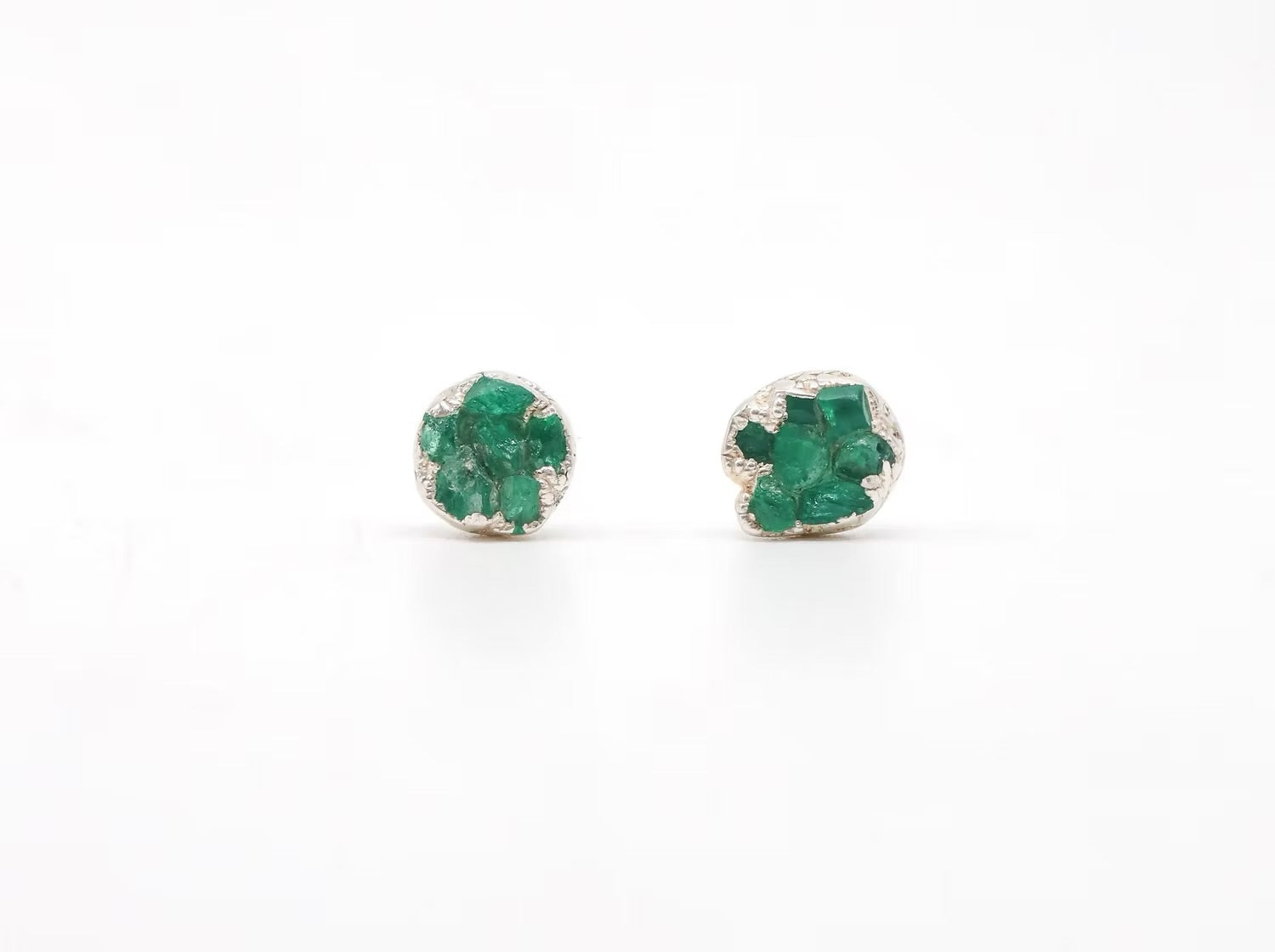 Joyas de pendientes pequeños en bronce con enchape en oro, esmeraldas naturales en bruto y piedras preciosas: Elegancia y Distinción.