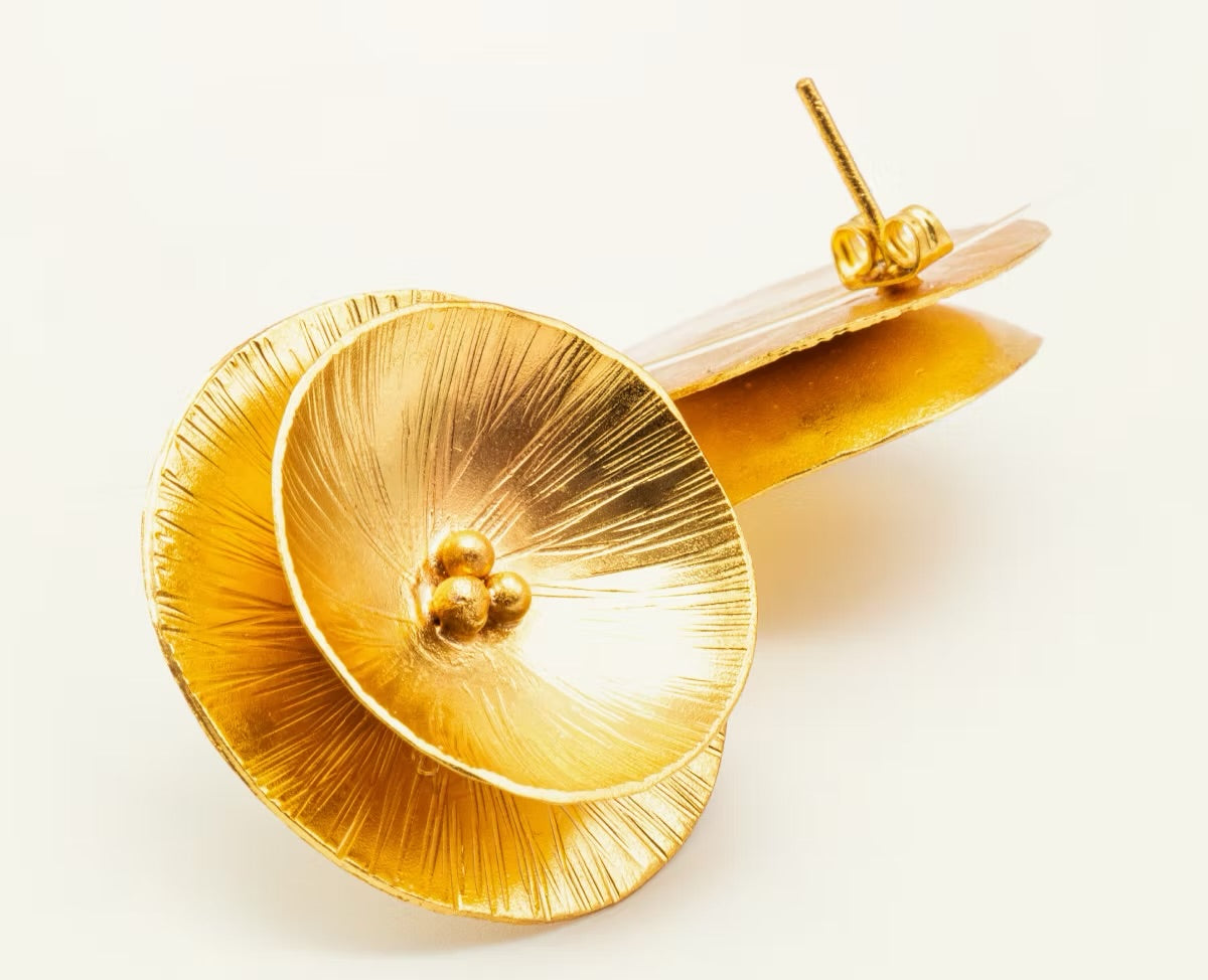 $140.000,00$140.000,00/Joya hecha en Bronce enchapado en Oro de 24 k. PESO: 4.6 gr C/U.MEDIDAS: 2,5 cm alto x 3,0 cm ancho. Joyería Contemporánea hecha a mano en Bogotá, Colombia.