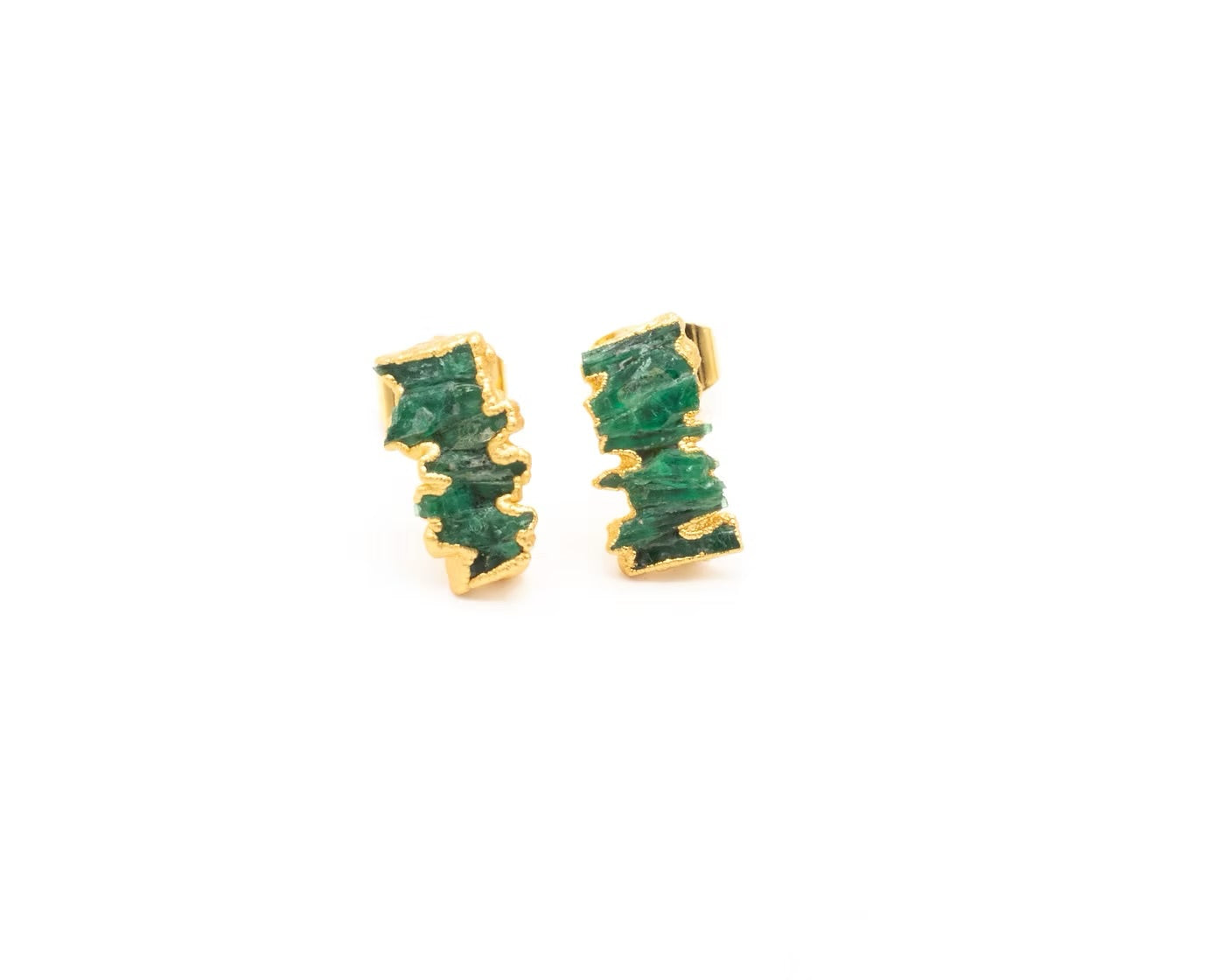 Stud earrings with raw emeralds. Jewelry crafted in bronze with 24K gold plating. All our pieces are nickel-free.