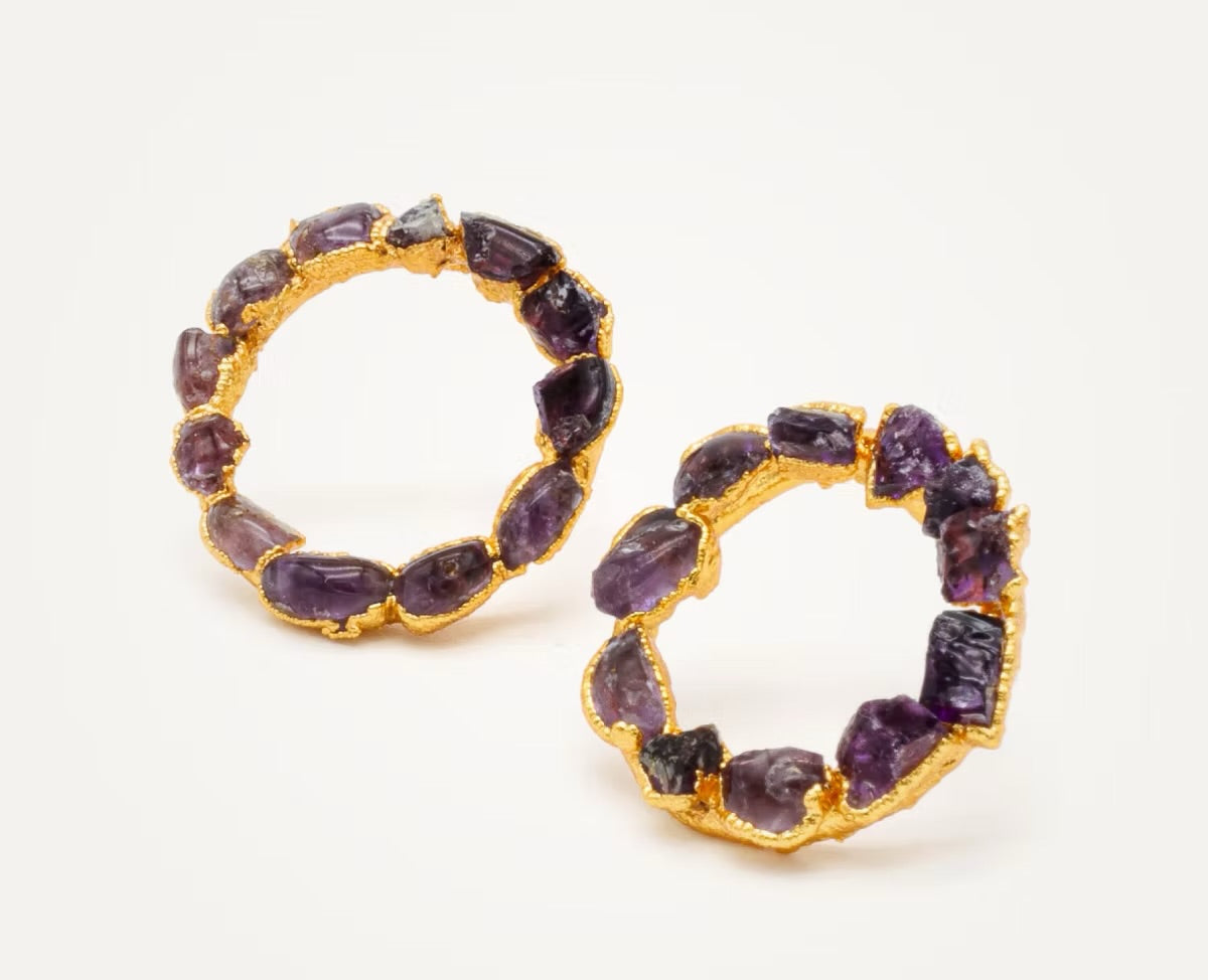Exclusive jewelry from L'AMOUR Collection, stud earrings with inlaid raw natural emeralds and crafted in bronze with 24k gold plating. All our pieces are nickel-free.