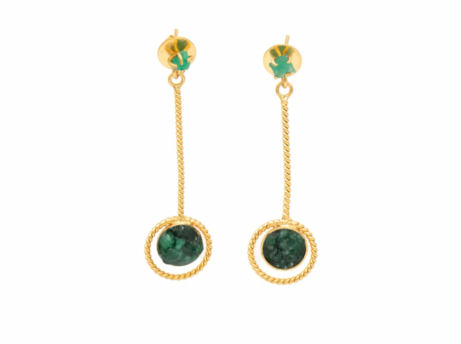 Medium flat hoop earring, 3 cm, emeralds, fusion