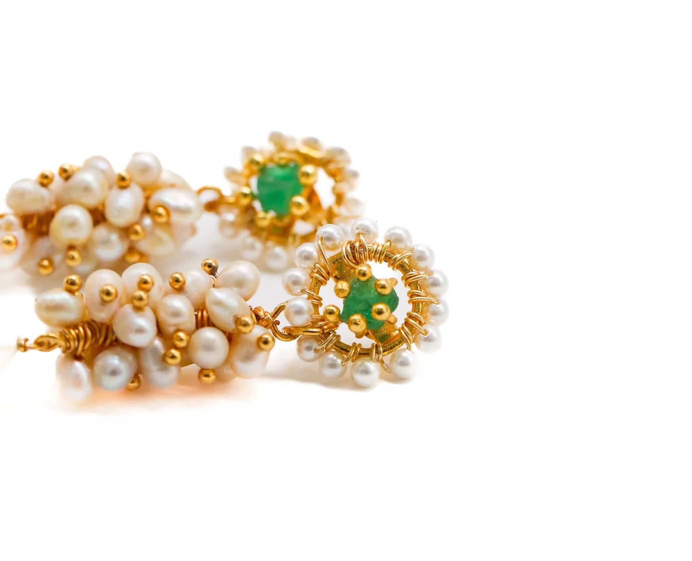 Joya elaborada en bronce enchapada en Oro 24k con perlas naturales.