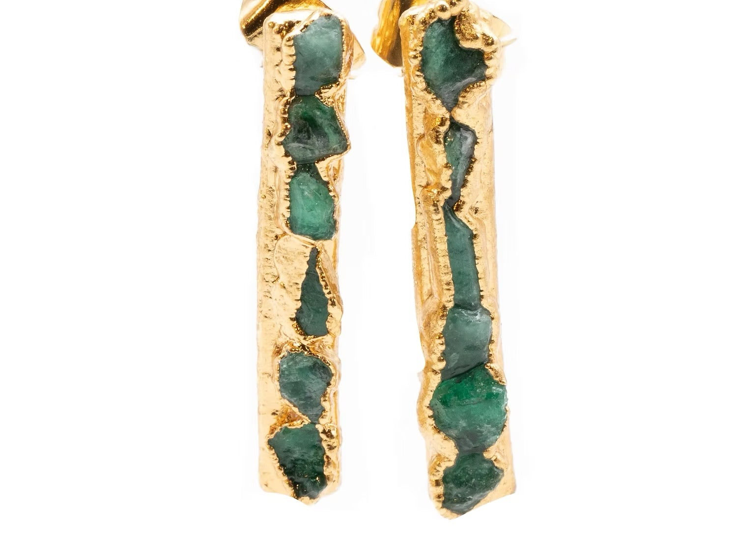 Joya exclusiva de FUSIÓN Collection. Pieza hecha en bronce con enchapado en oro de 24 k y esmeraldas 100% natural.